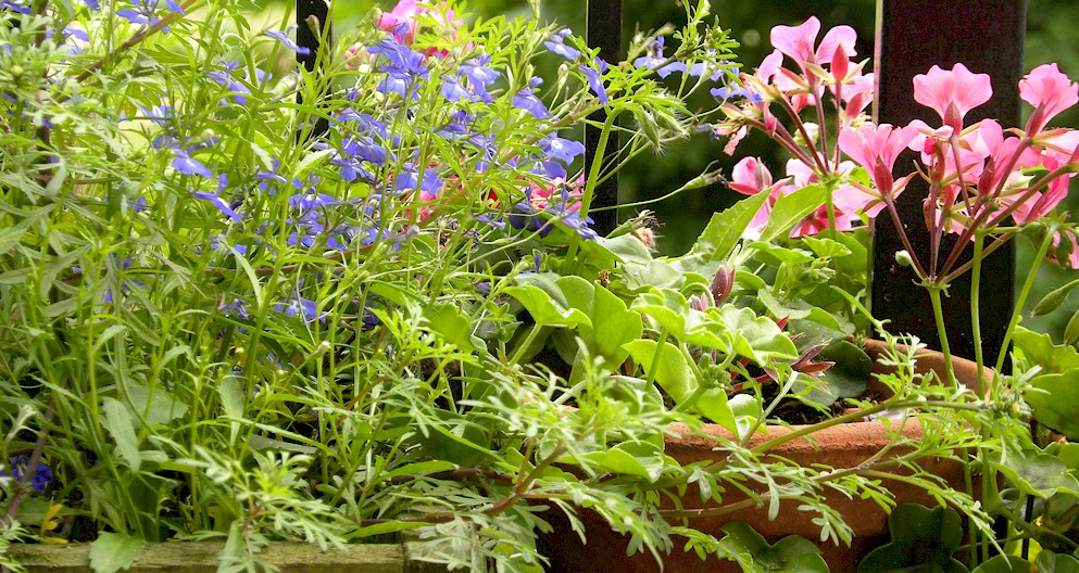 foxgloves, dead nettles, rosemary, cornflower, scabious.